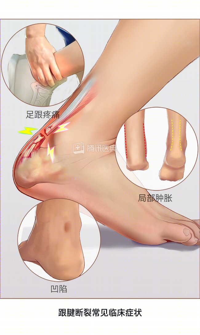 医生可根据病史,症状与体格检查,辅助检查结果来诊断跟腱断裂。