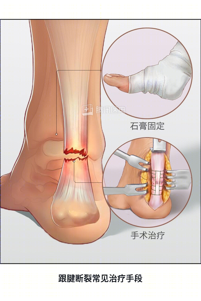 跟腱断裂的治疗目的是恢复跟腱的连续性以及功能,分为手术治疗和非手术治疗,手术治疗是主要的治疗方式。