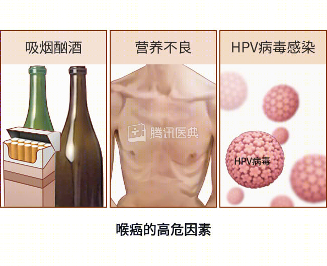 目前尚未完全清楚喉癌的病因。吸烟酗酒,营养不良,感染人乳头瘤病毒(HPV),长时间大量暴露于石棉、木屑、油漆烟雾等,会增加喉癌的发生风险。此外,男性喉癌的发病率是女性的4倍,超过一半的喉癌患者超过65岁。
