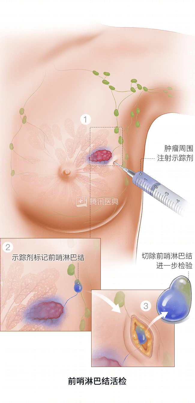 乳腺癌可依靠乳腺X线(钼靶)检查或乳腺B超筛查,确诊主要依靠活检病理。为了明确癌细胞的侵犯范围,医生可能让患者进行CT、磁共振(MRI)等影像学检查和前哨淋巴结活检。