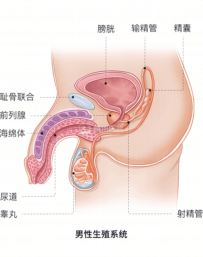 阴茎由皮肤、神经、平滑肌和血管组成。阴茎内有3个腔,其中包含柔软的海绵状血管网络。阴茎中有尿道,尿液和精液穿过尿道,通过阴茎开口(龟头)排除体外。